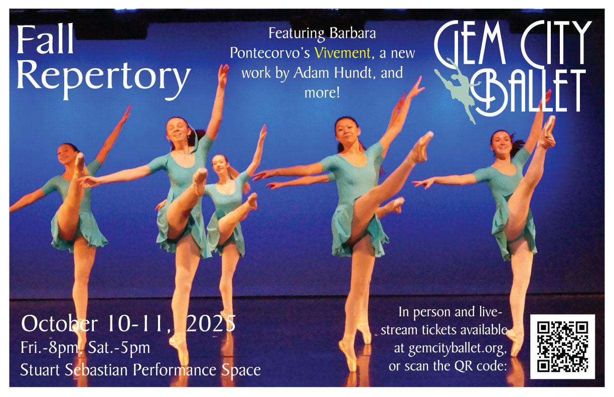 available at gemcityballet.org, by calling 937-550-9245, or scan the QR at righ